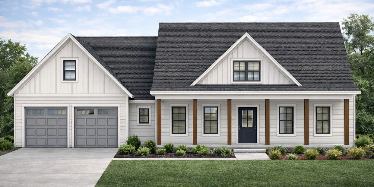 The great room opens directly to a covered rear porch, extending the living space outdoors and providing an ideal spot for relaxing or entertaining. A nearby utility and laundry area is tucked away for convenience without interrupting the main living areas.